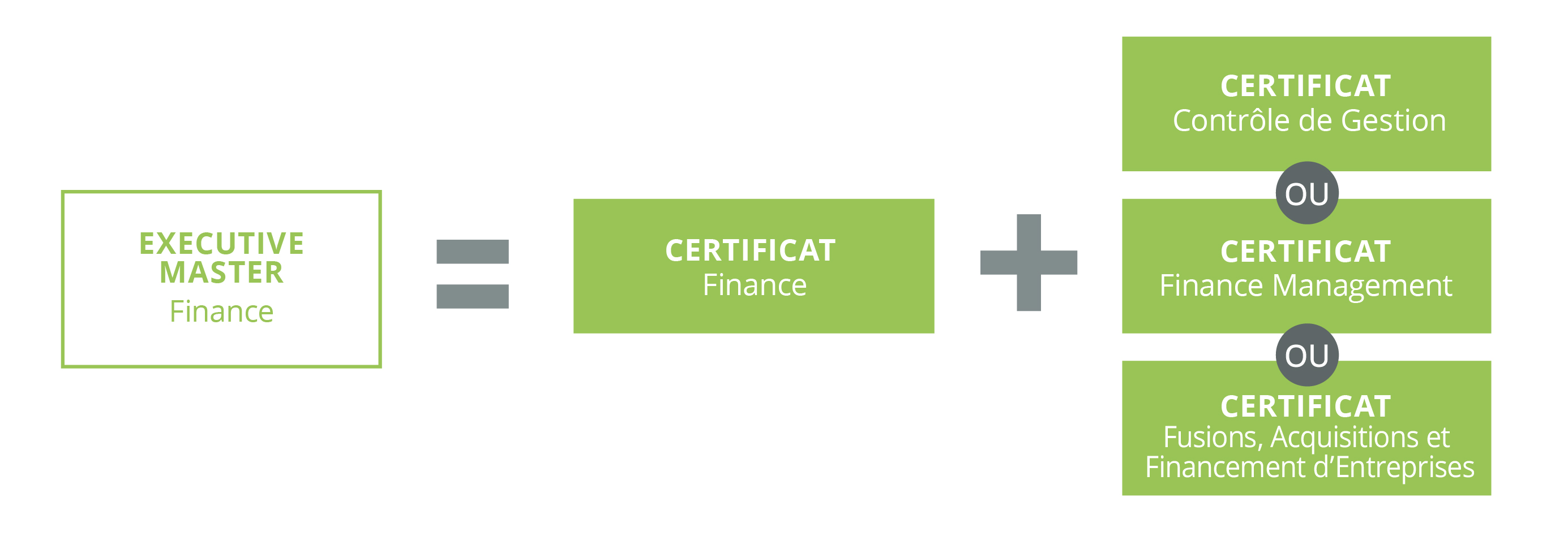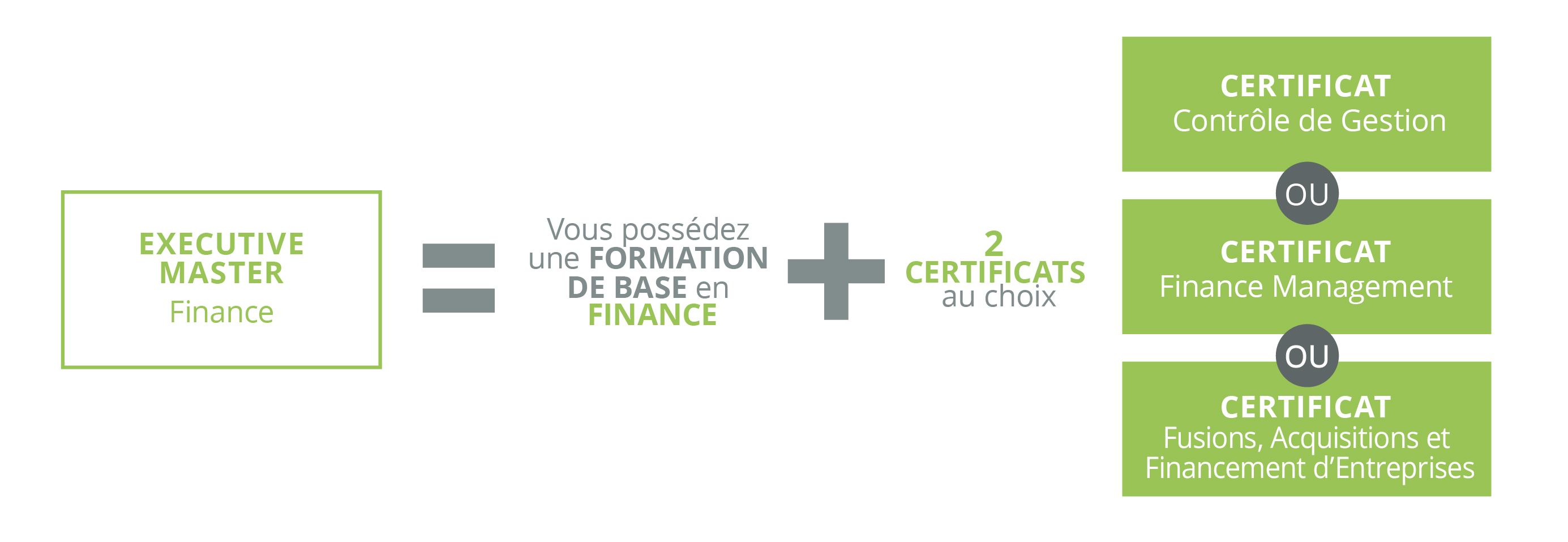 L'obtention du Certificat en Finance permet d'accéder directement aux 3 certificats de spécialisation.
